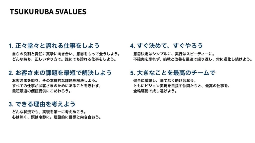 ツクルバで言語化されたカルチャーというと、今年(2024年)の2月にアップデートされた『5VALUES』になりますか?